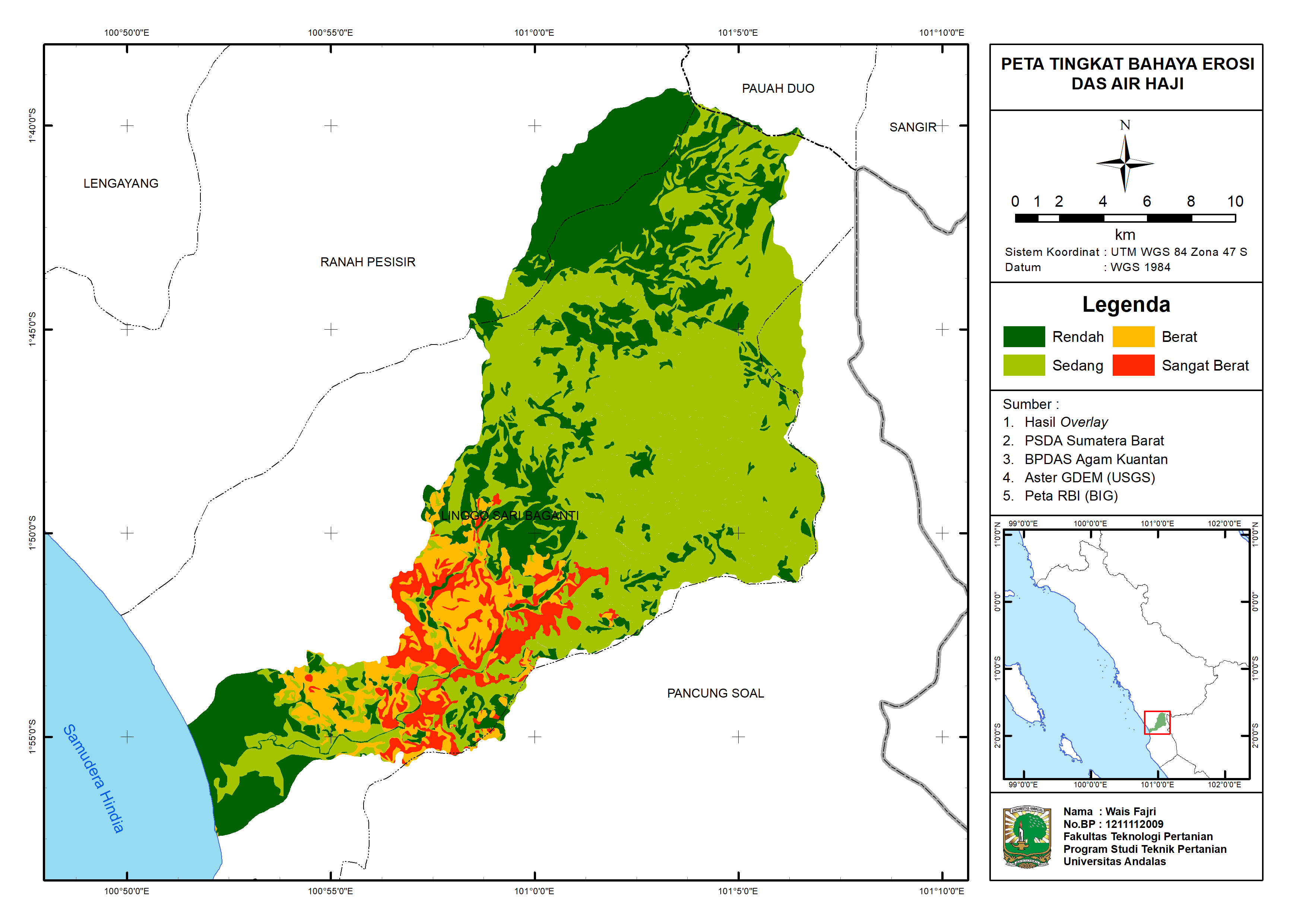 Sistem Informasi Tingkat Bahaya Erosi DAS Air Haji Kecamatan Linggo Sari Baganti kabupaten Pesisir Selatan.